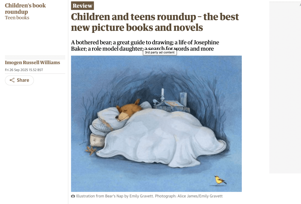 The reviews keep coming in, and they are astonishing. On Friday, Imogen Russell Williams of The Guardian included it in her round up of the best new books for children and teens, for which I’m ineffably grateful.